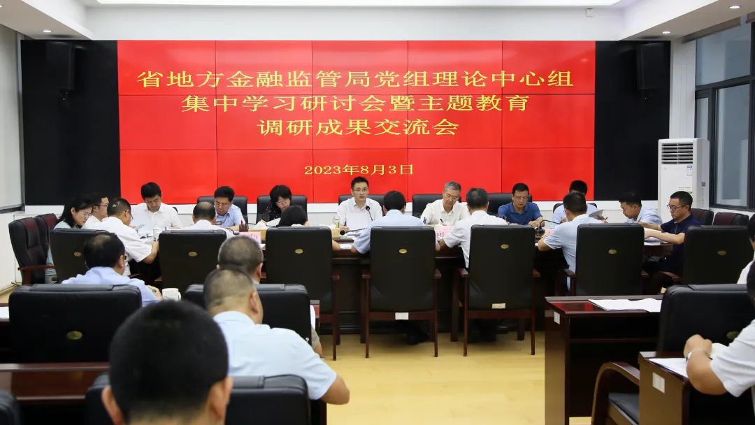 8月3日,省地方金融监管局召开党组理论学习中心组集中学习研讨会暨主题教育调研成果交流会,深入学习贯彻习近平总书记关于推动高质量发展的重要讲话精神、关于以学促干的重要论述、关于调查研究的重要论述,认真学习践行浙江“千万工程”和“浦江经验”,围绕主题教育领题调研成果进行交流研讨。局党组书记、局长杨松主持,省委主题教育第十四巡回指导组副组长田志清到会指导,局党组成员、副局长龚雁、邓承红、郭盛、蒋松云参加。