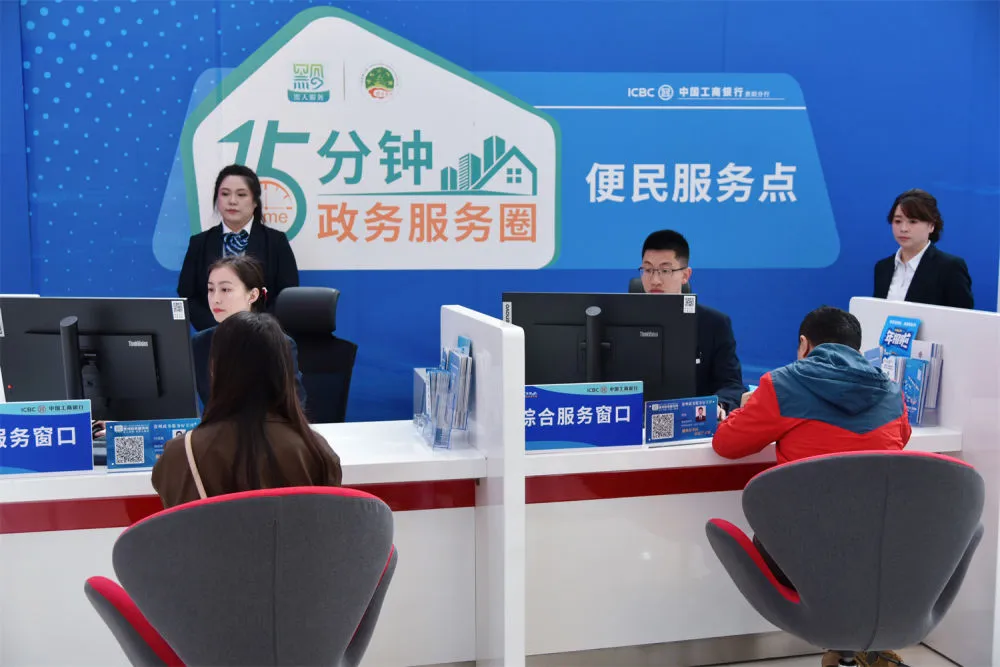 为持续提升政务服务便利化水平,贵阳市人民政府政务服务中心联合中国工商银行贵阳分行在全市范围内率先开设第一家政务服务专区,群众和企业可在便民服务点办理“全省通办”的三千余个政务事项。