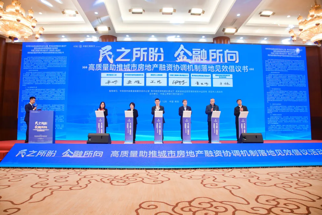 12月19日,中国工商银行贵州省分行在贵阳举办“民之所盼 金融所向 高质量助推城市房地产融资协调机制落地见效”倡议活动。贵阳市委副书记、代市长,贵安新区党工委副书记、管委会主任王宏,省委金融办、省委金融工委(省地方金融管理局)副主任、副书记(副局长)龚雁出席活动,贵州省住房和城乡建设厅总工程师董亚伟,中国工商银行贵州省分行党委书记、行长张卫东出席并作讲话,中国工商银行贵州省分行党委委员、副行长,贵阳分行党委书记、行长苏辉介绍支持房地产市场平稳健康发展行动方案,部分在筑优质房企代表作交流发言,活动发出高质量助推城市房地产融资协调机制落地见效倡议,中共贵州省委金融委员会办公室、国家金融监督管理总局贵州监管局、贵州省总工会相关负责人,贵阳市委市政府有关部门相关负责人,23家央企在黔房地产企业、省市国有房地产企业、贵阳市民营房地产企业代表,贵阳市、区和国企工会代表参加活动。
