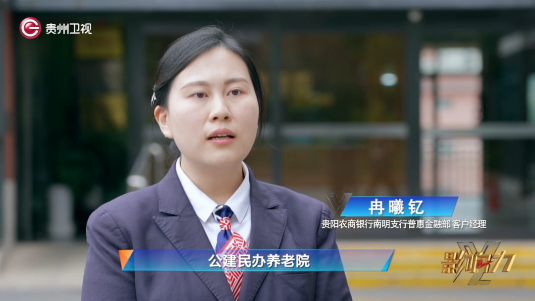 冉曦钇 贵阳农商银行南明支行普惠金融部客户经理:“根据我们国家普惠金融的一个要求,我们行正好推出了适老化金融的一个服务。2021底,我们在南明区这边进行摸排,知道了这边是一个新建的公建民办养老院,然后我们行就主动和他们联系上了。”