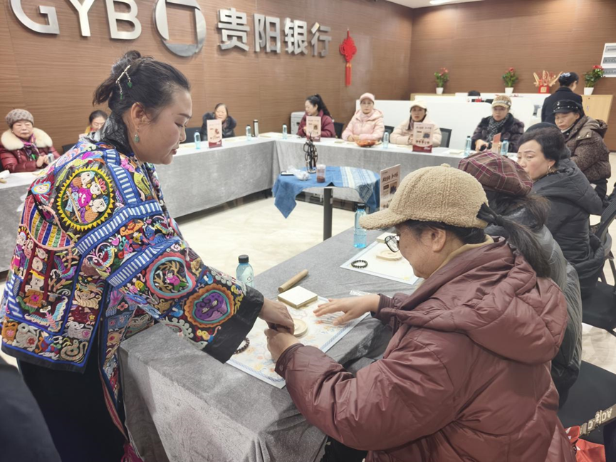 精准链接,传承人走进“爽爽银发课堂”。贵阳银行以金融为媒、文化为桥,向贵州各地非物质文化遗产代表性传承人发出诚挚邀约,力邀他们走进“爽爽银发课堂”,让千年匠艺与银发时光在金融服务的温暖氛围中温柔相拥。黔东南的蜡染老师执蜡刀轻点,青蓝底色上绽放的不仅是精美的纹样,更是流淌千年的民族故事;黔南的刺绣传承人飞针走线,平绣、数纱绣的针脚间,串联起指尖的温度与文化的基因;侗族大歌歌师以声传情,多声部的悠扬旋律里,藏着祖辈流传的生活智慧与历史记忆。