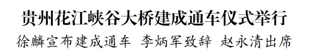 李炳军代表省委、省政府对花江峡谷大桥建成通车表示祝贺,向大桥设计者、建设者、参与者致以崇高敬意,向奋战在交通一线的广大干部职工表示亲切慰问。他指出,近些年,贵州深入贯彻习近平总书记关于交通强国的重要论述和关于贵州工作的重要讲话重要指示精神,推动交通基础设施条件大幅改善,为打赢脱贫攻坚战、推动高质量发展提供了坚实支撑。“十四五”以来,我们把交通基础设施建设重点转到补短板、畅循环上来,更加注重与产业发展紧密结合,质量效益不断提升。花江峡谷大桥从规划之初就注重与文化体育旅游相结合,既是重要的交通基础设施,又是桥旅融合的典范。要以此为榜样,深入推进桥旅、文旅、体旅等融合发展,加快建设世界级旅游目的地。要推动交通基础设施从建设向“建设+运营管理”转变,促进交通运输提质增效。要更大力度推动交通服务产业转型升级,更好促进城乡融合、区域协调发展,推动高质量发展不断取得新成效,奋力在中国式现代化进程中展现贵州新风采。