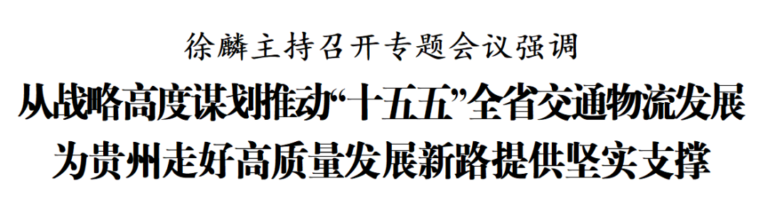11月27日,省委书记徐麟主持召开专题会议,研究全省综合立体交通建设工作。他强调,要深学笃用习近平总书记关于交通强国的重要论述,深入贯彻党的二十届四中全会精神,细化落实省委十三届八次全会部署,从战略高度谋划推动“十五五”全省交通物流发展,为贵州走好高质量发展新路提供坚实支撑。省领导郭强、郭成林、石化清参加。