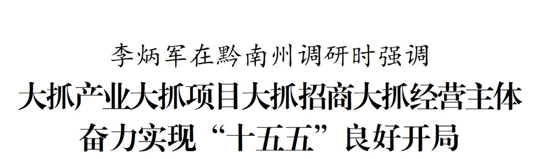 1月5日至6日,省委副书记、省长李炳军到黔南州瓮安县、福泉市、龙里县调研。他强调,要深入贯彻习近平总书记在贵州考察时的重要讲话精神,全面落实中央和省委经济工作会议部署,全力大抓产业、大抓项目、大抓招商、大抓经营主体,奋力实现“十五五”良好开局。副省长罗强参加。