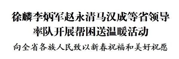 在农历丙午马年春节即将来临之际,近日,省委书记、省人大常委会主任徐麟,省委副书记、省长李炳军,省政协主席赵永清,省委副书记马汉成等省领导,分别率队到9个市(州)开展帮困送温暖活动,向全省各族人民致以新春祝福和美好祝愿。