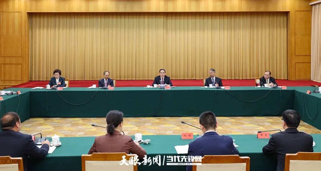 3月8日下午,十四届全国人大四次会议贵州代表团举行会议,审议国家发展规划法草案。全国人大代表、省委书记、省人大常委会主任徐麟,全国人大代表、省委副书记、省长李炳军,全国人大代表、十四届全国人大常委会委员、全国人大常委会法工委主任沈春耀参加审议。