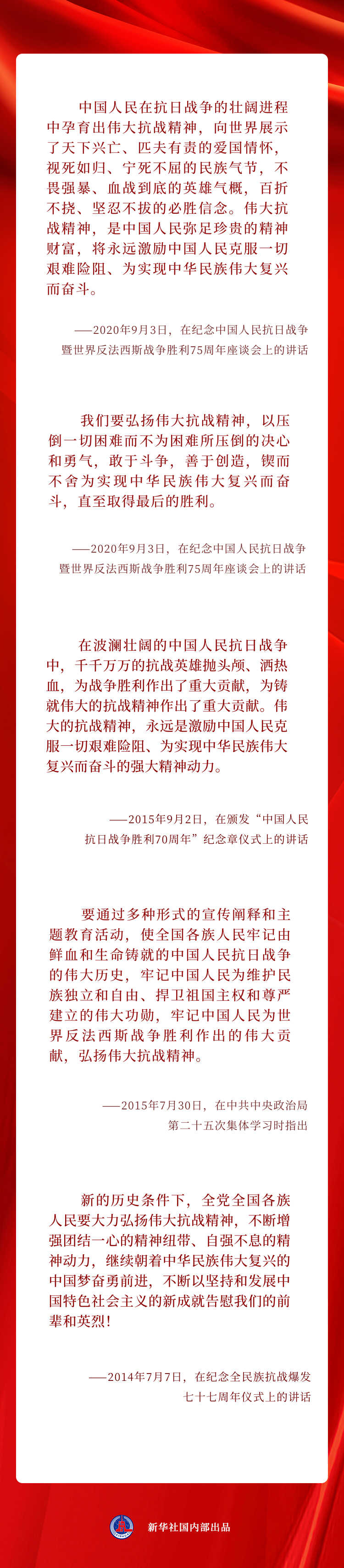 让我们一起重温习近平总书记重要论述,从伟大抗战精神中汲取力量↓