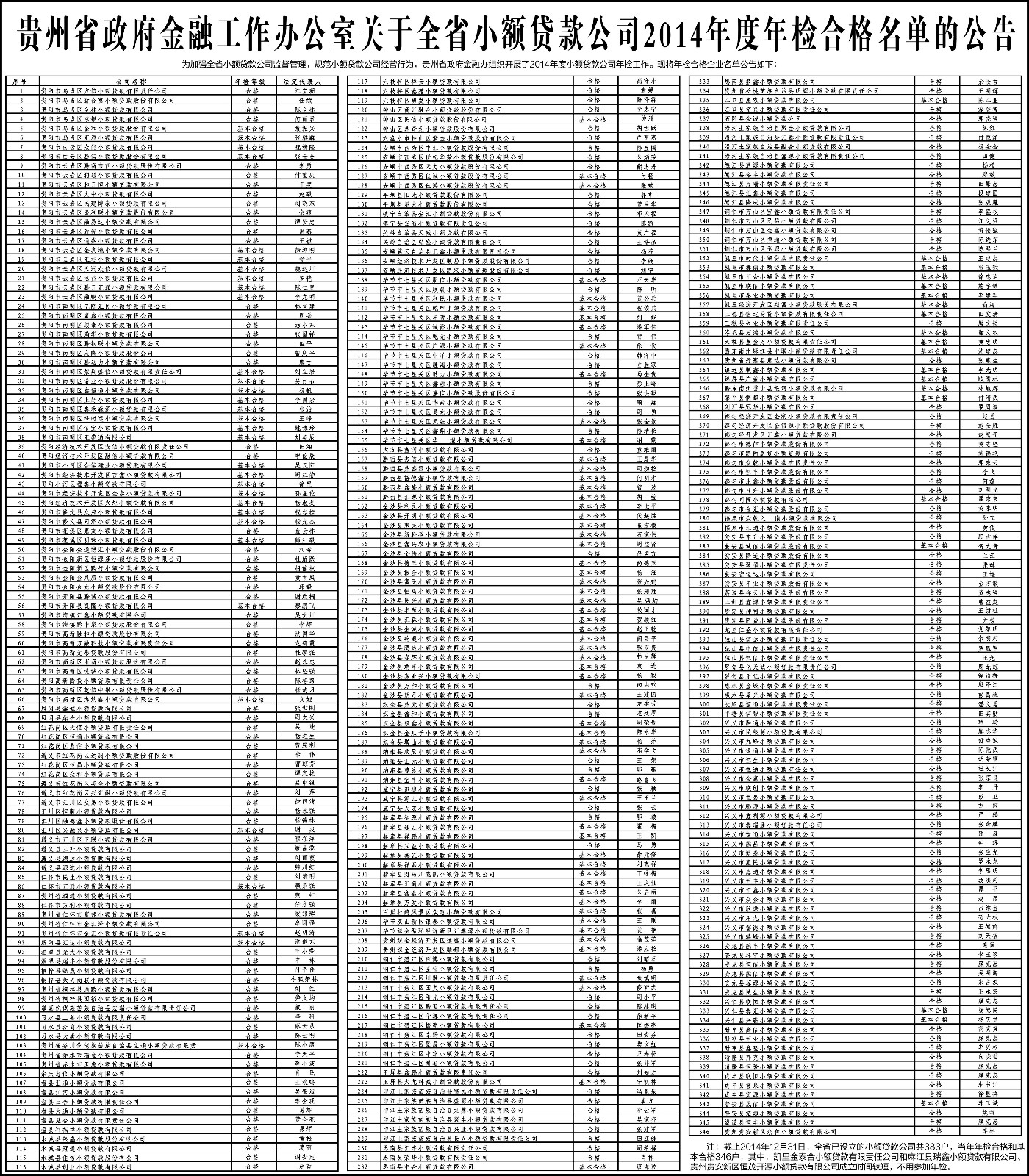 贵州省小额贷款公司2014年度年检合格名单的公告