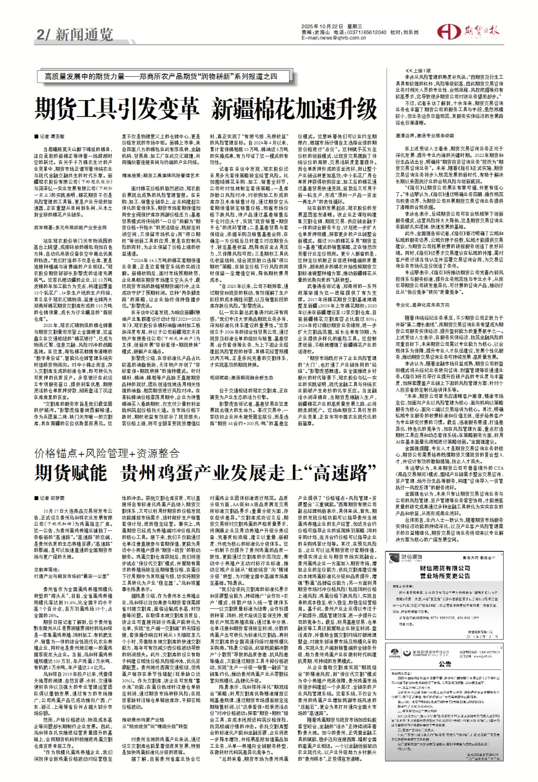 从企业借助交割库实现“期现结合”的精准风控,到“保价代交割”模式为中小养殖户兜底保障,贵州鸡蛋市场将逐步构建起一个多层次、全链条的产业风险管理系统。这套系统,不仅会为贵州的鸡蛋产业增加抵御市场风浪的“压舱石”,更会为其打开通向全国大市场的“高速路”。