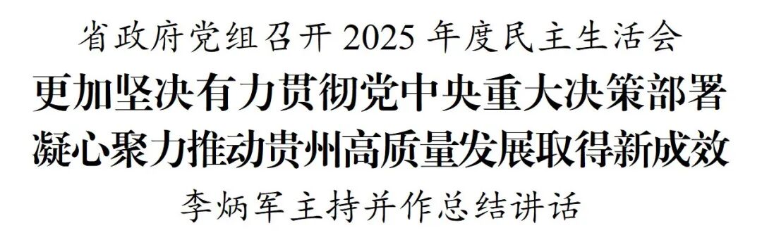 根据党中央部署和省委安排,2月2日,省政府党组召开2025年度民主生活会,以中央政治局民主生活会为标杆,深入贯彻落实党的二十届四中全会精神和习近平总书记在贵州考察时的重要讲话精神,围绕锲而不舍落实中央八项规定精神,对照中央巡视、审计反馈意见,认真开展对照检查、党性分析,以优良作风凝心聚力、真抓实干,奋力在中国式现代化进程中展现贵州新风采。省长、省政府党组书记李炳军主持会议并作总结讲话。省政府党组成员参加,非中共党员副省长列席。