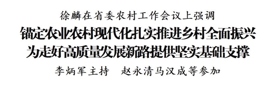 徐麟肯定过去一年全省“三农”工作成绩。他指出,新征程上要牢记习近平总书记厚望重托,全面把握“三农”工作重大意义、重要目标、重点任务,努力把农业建成现代化大产业、使农村基本具备现代生活条件、让农民生活更加富裕美好。