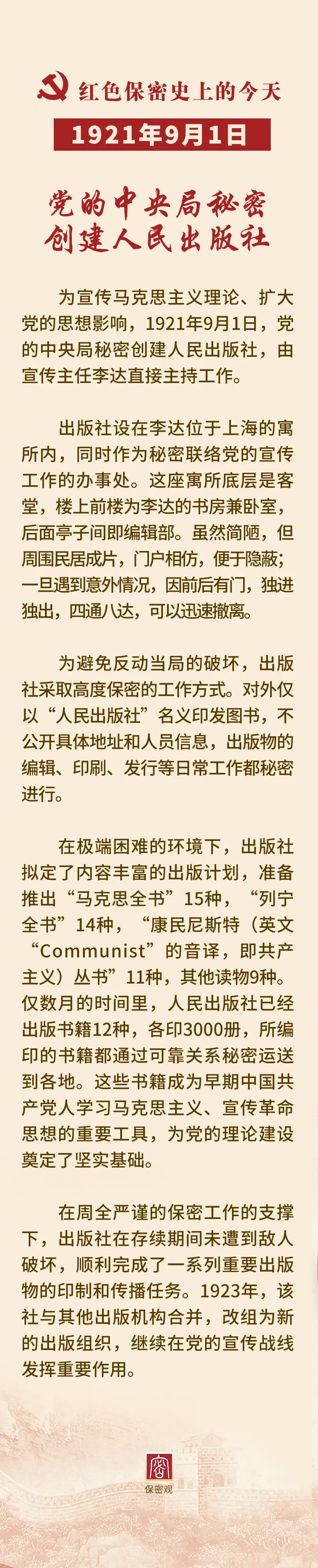 1921年9月1日丨党的中央局秘密创建人民出版社