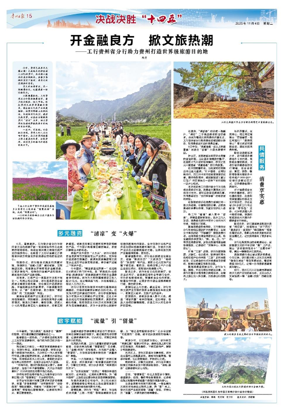 一业兴、百业旺。以金融为丝线,贵州工行人正以巧手落针,在多彩贵州版图上绣出最美的风景,扮靓贵州,吸引更多的海内外游客前来打卡。
