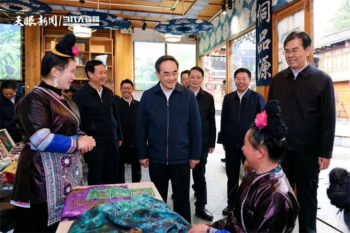 黎平县肇兴侗寨是全国最大的侗族村寨之一。去年3月17日,习近平总书记深入实地考察,亲切看望各族干部群众,带来党中央的关怀厚爱。一年来,肇兴侗寨沉浸在总书记考察带来的温暖、幸福和喜悦之中,处处都能感受到牢记嘱托、感恩奋进的昂扬精神。徐麟、李炳军来到这里,步行察看侗寨风貌,走进沿街商铺、蜡染工坊和群众家中交流,勉励大家铸牢中华民族共同体意识,深入挖掘、充分发挥比较优势,以特色优势单品带动拓展旅游商品市场,进一步打造高品质旅游景区。从江县洛香镇荣新村四联寨也是一个侗族聚居地,徐麟、李炳军来到这里实地了解乡村规划建设情况,叮嘱当地加强传统村落和特色村寨保护,深入推进“两清两改两治理”,建设生态宜居美丽乡村,绵绵用力推进移风易俗、培育文明新风。